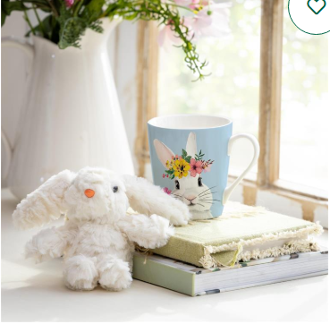 Blue Bunny Cup and White Plush Bunny