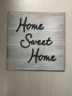 This timeless white washed wall art expresses how we all feel at the end of a long day! The words “Home Sweet Home” are done beautifully in black metal script.